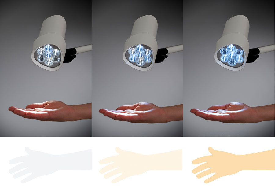 The premium version HALUX N50 is convinced with its minimalist form and the typical Swiss attention to detail. It is the perfect luminaire for anyone who wants more light output or colour-changing light. Can be used in all areas of human and veterinary medicine. Ideal for very fine minor surgical procedures such as eye-lid examination and many other procedures.