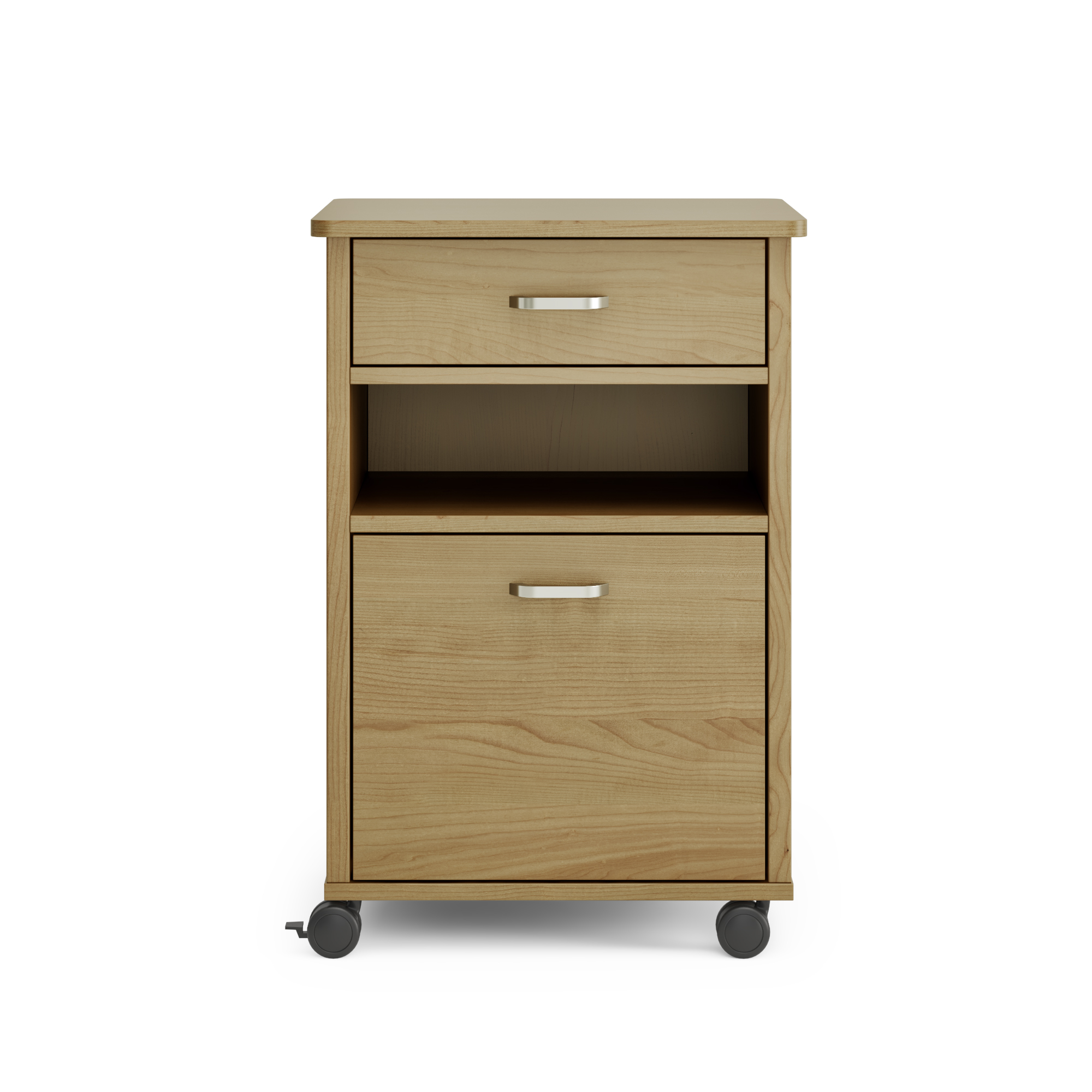 High-quality Tawa melamine timber-grain board construction Soft Rounded corners and edges for added safety and peace of mind Optional locking 50mm Castors or timber feet Wipeable, white drawer interior Option of 2 drawers or 1 drawer and 1 door cabinet Handle options