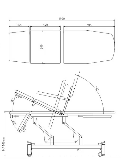 Upholstered in medical-grade PVC vinyl: fireproof, waterproof, stain, mildew, oil, and wear resistant